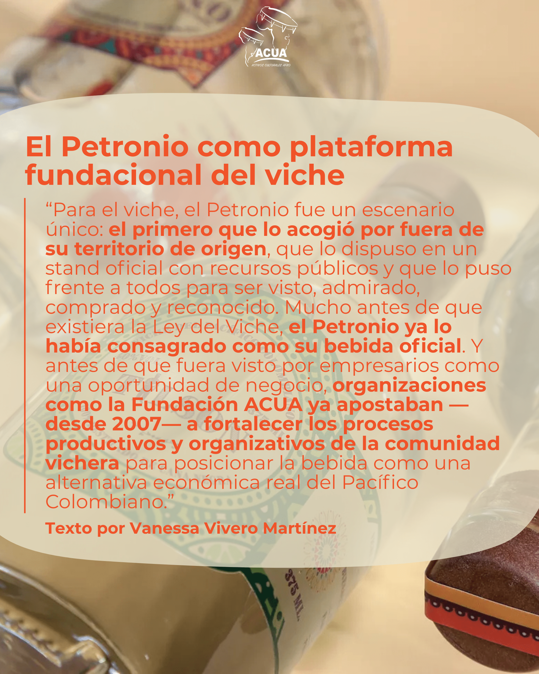 En su artículo, “Antecedentes de la Ley del Viche: El Petronio”, Vivero Martínez presenta un análisis profundamente documentado sobre el rol del Festival Petronio Álvarez como punto clave en la visibilización de esta bebida ancestral. Mucho antes de existir la ley, el Petronio ya había dado un lugar central al Viche, permitiendo que saliera de su territorio original para ser apreciado, comercializado y reconocido en un escenario público y cultural de gran alcance.